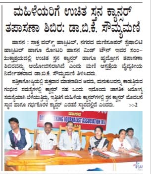 NOTE: Kindly make use of this free breast cancer screening camp and BMD(bone mineral density)camp on 4th Tuesday of every month at Mani Super Speciality Hospital and research institute, Hassan.